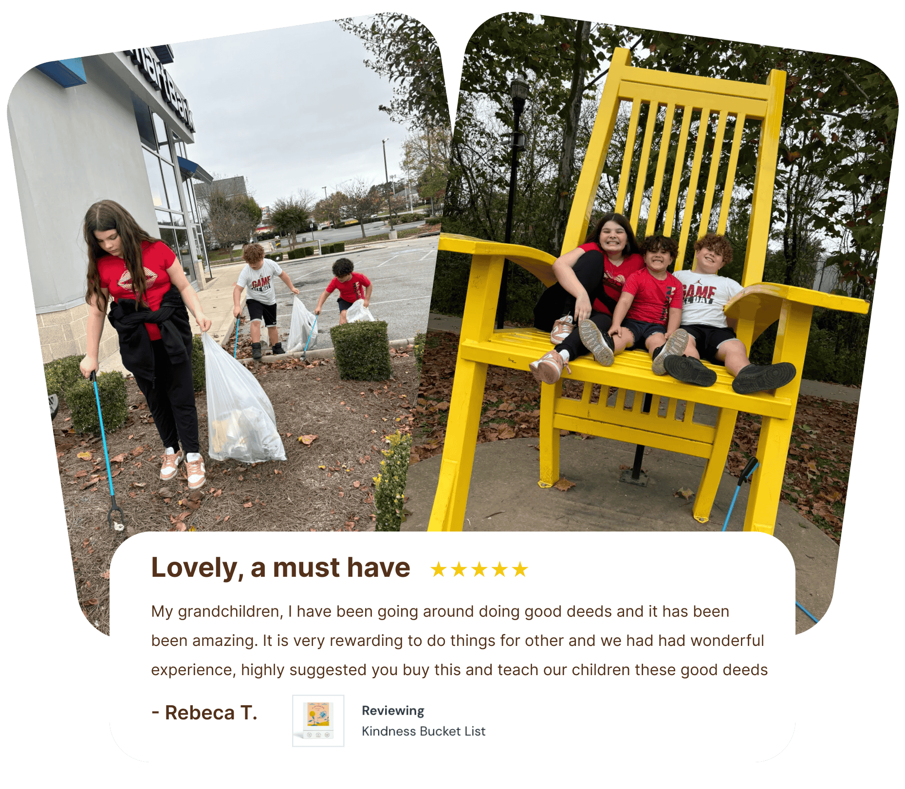 This grandmother used her bucket list to teach her kids the value of good deeds and kindness. Their kindness adventure looked like cleaning up their local community. | | This grandmother used her bucket list to teach her kids the value of good deeds and kindness. Their kindness adventure looked like cleaning up their local community. |