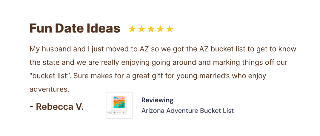 DATE NIGHT DEALS 1 bucket list, use code 'DATENIGHT' at checkout for free shipping 2 bucket lists, 15% off (+ free shipping) 3+ bucket lists, 20% off (+ free shipping) | | | | |